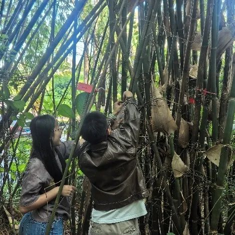 鉴于竹类植物极少开花结果,形态分类存在较大难度,加之专业分类学者稀缺,园内竹种的精确鉴定一直是一项挑战。即便曾邀请竹类研究专家进行鉴定,也因难度过大而未能完成。而今,基于分子序列的DNA条形码技术为竹类植物的精确鉴定提供了另一种途径。生命组学教职工党支部在持续六年的园区维护基础上,充分发挥专业优势,带领学生完成了全园竹种的调查、定位、鉴定和挂牌工作,建立起完整的竹种植物名录,为教学科研和科普服务提供了坚实基础。