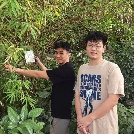 紧接着,教职工党支部的老师们引领学生支部成员步入幽静的竹园,开展竹种挂牌活动。在这个过程中,大家对中大竹园丰富多样的竹种有了更为深入的认知。这座竹园不仅是国内种类最为丰富的竹种标本园之一,更珍藏着我国数量最多的竹类活体模式标本,为早期的华南植物园竹园提供了近半数的竹种资源。除了竹子外,本竹园也零星种植有其他珍贵的植物,如国家一级保护植物猪血木(Euryodendron excelsum,山茶科),该植物由是中国近代植物分类学的开拓者和奠基人之一的陈焕镛院士亲自引入种植的。另外还有中山大学校园里仅有的焕镛木(Woonyoungia septentrionalis,木兰科)、大叶木莲(Manglietia megphylla,木兰科)、鹅掌楸(Liriodendron chinense,木兰科)、大花第伦桃(Dillenia turbinata,第伦桃科)、锡兰杜英(Elaeocarpus serratus,杜英科)、大叶藤黄(Garcinia xanthochymus,藤黄科)、越南抱茎茶(Camellia amplexicaulis,山茶科)、红果糙皮茶(Camellia crapnelliana,山茶科)、小叶买麻藤(Gnetum parvifolium,买麻藤科)等。