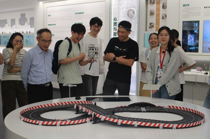 合影结束后,活动进入了令人期待的参观阶段。在博物馆工作人员的带领下,师生共同参观了博物馆中“生命与健康展厅”,展厅配备了数字解剖台、心理实验教学系统、多学科虚拟仿真实验数字化体系,还有3D打印解剖模型、生药标本、急救模拟人、环境工程AR模型等。教师和学生跟随讲解员参观展厅,并使用展厅的设备进行了沉浸式的体验和互动。特别是支部周婷等老师参与了“生态文明”板块的策划,在讲解的过程中将生态学课堂知识与展厅内容进行了融合,学生在参观以及互动中进一步加深了对生态学知识的理解。