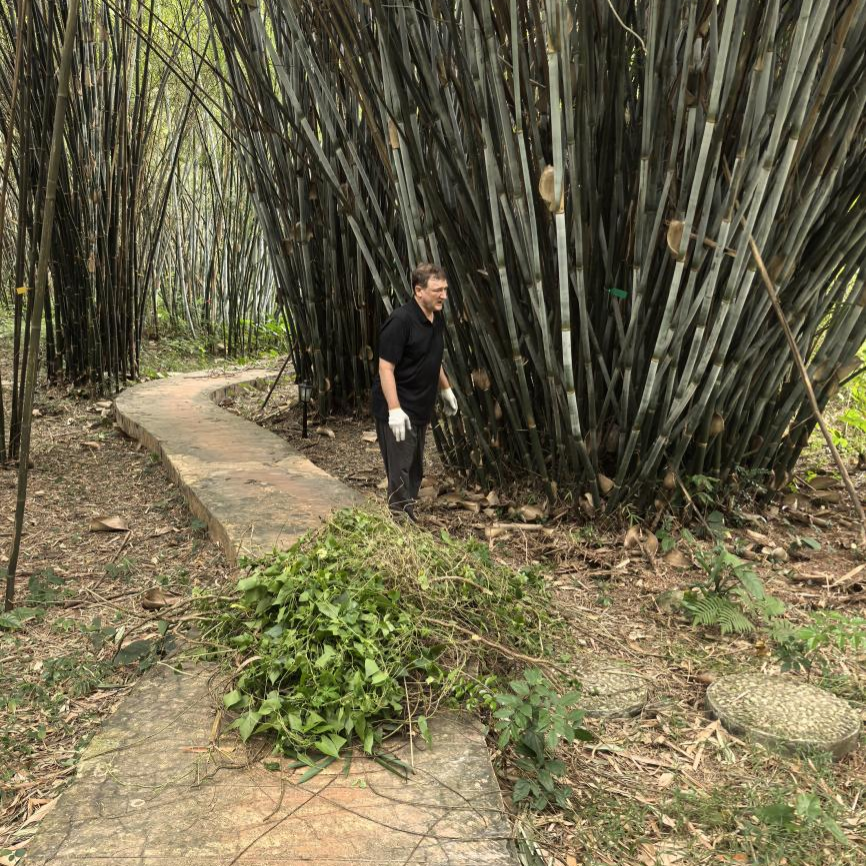 活动于2025年11月3日上午9时正式开始。教职工党支部书记万刚教授首先作动员讲话,介绍了生命组学团队长期以来对竹园的维护与管理情况,强调了竹园作为学院重要科研基地和校园生态景观的双重价值。他指出,全体党员应积极发挥模范带头作用,以实际行动践行“绿水青山就是金山银山”的发展理念,将组织生活与专业实践紧密结合,不断提升党支部的凝聚力和战斗力。