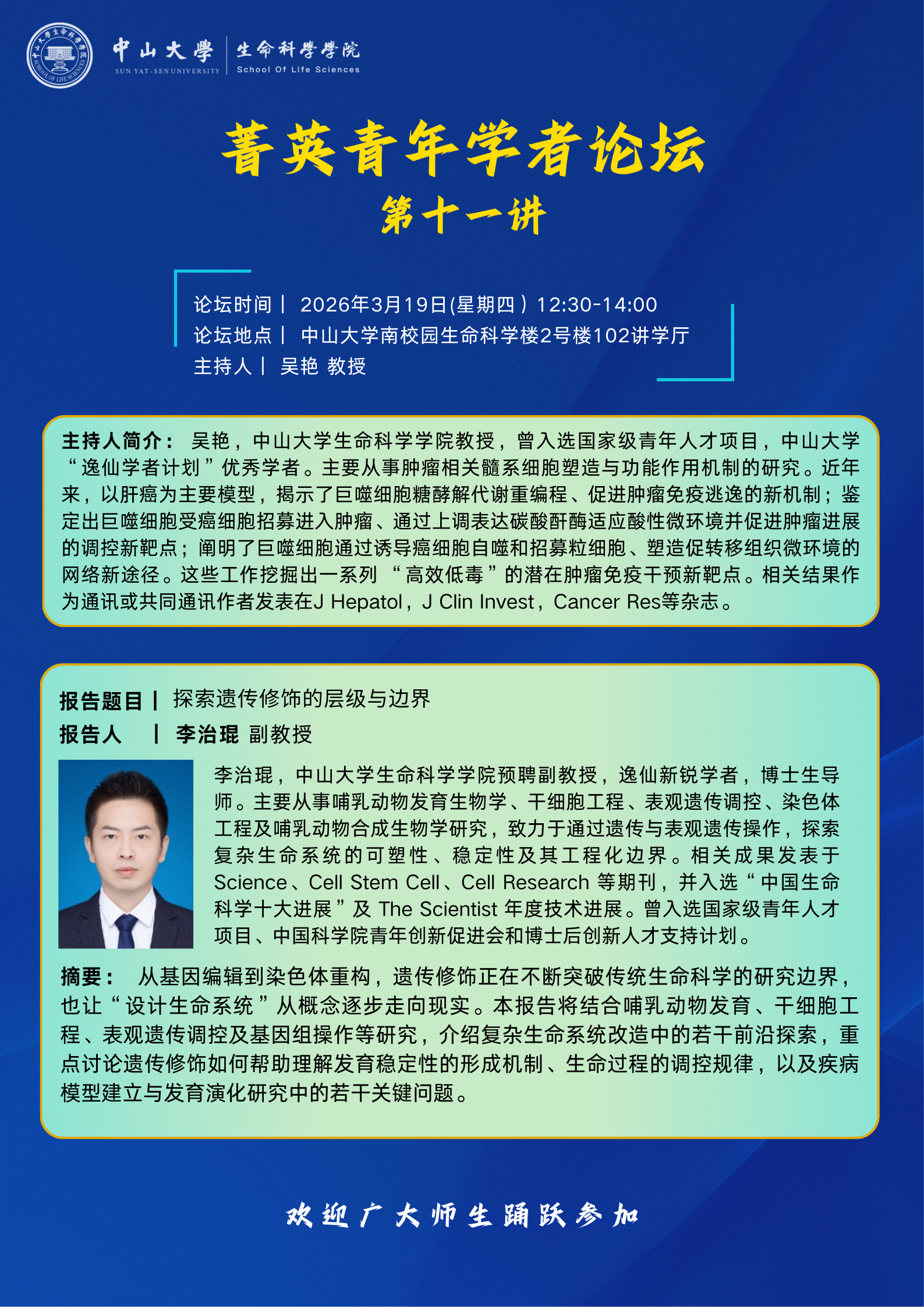 2026年3月19日菁英学者论坛第11讲:探索遗传修饰的层级与边界