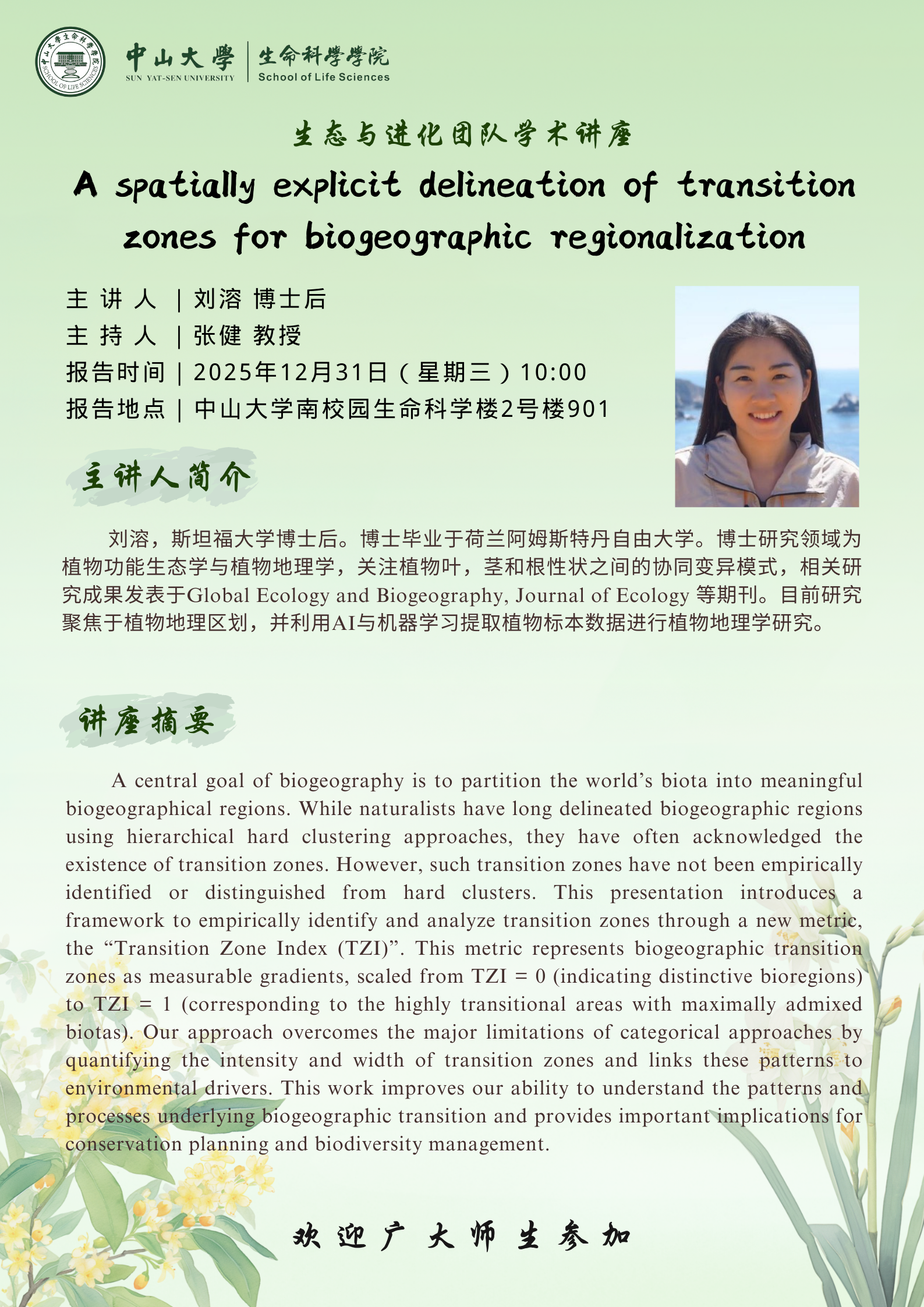 2025年12月31日生态与进化团队讲座:A spatially explicit delineation of transition zones for biogeographic regionaliz